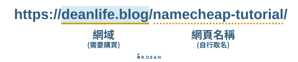 其中,網域指的是 “deanlife.blog” ,後面 “/namecheap-tutorial/” 則是網頁的名稱。